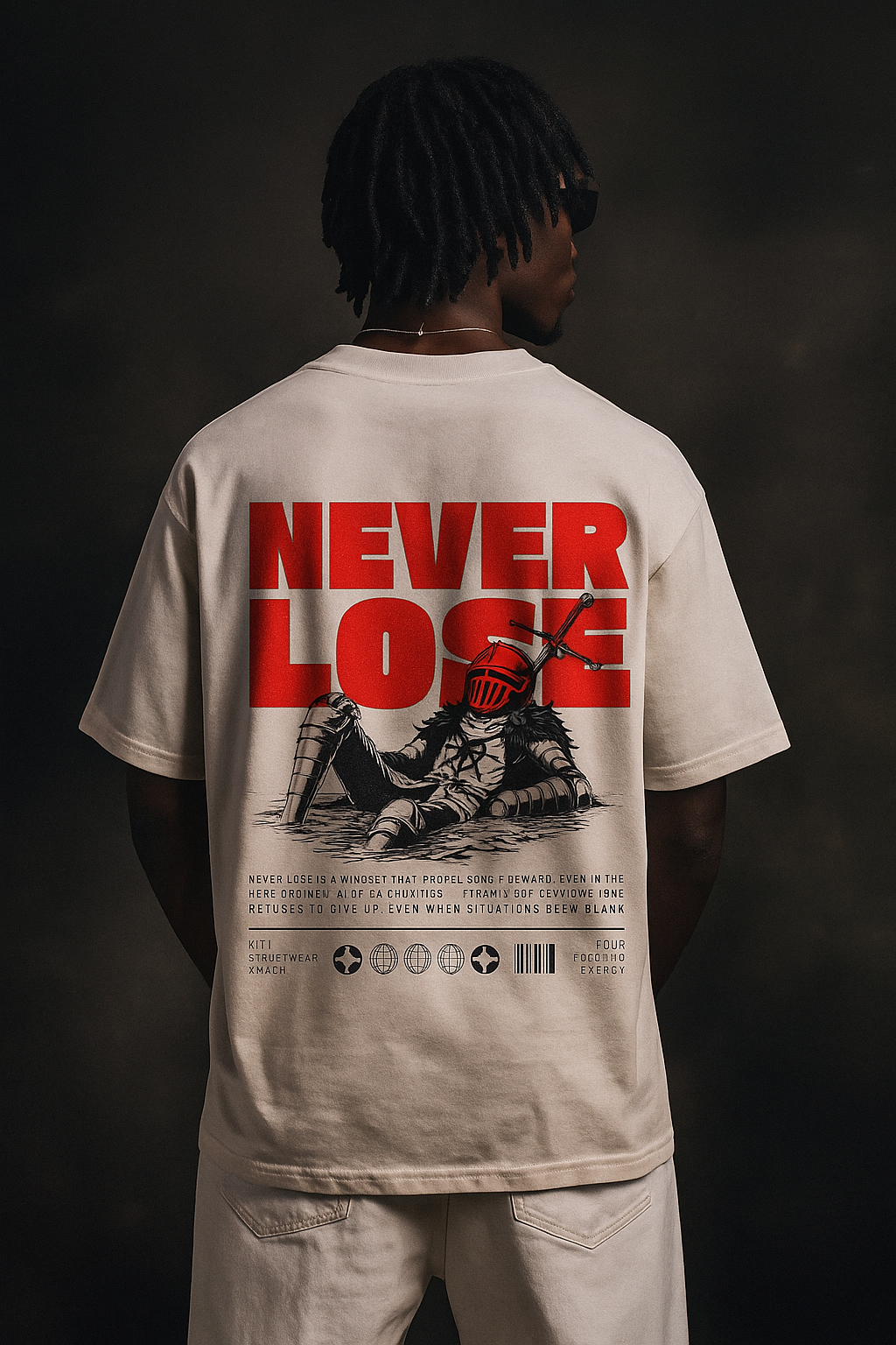 Crafted from premium 240 GSM French Terry Cotton, this heavyweight tee blends comfort with bold attitude. Featuring a striking knight helmet graphic with an ink-drip effect, it’s a symbol of silent strength and timeless grit. The perfect fusion of streetwear edge and minimal design, this piece holds its shape and message — Never Lose.